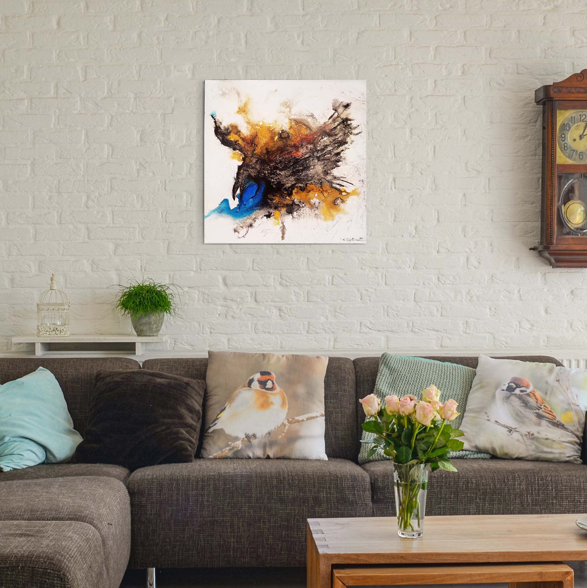 این اثر در ابعاد 50 × 50 سانتی‌متر است. مواد به کار رفته در آن اکولین (جوهر رنگی) و اکرلیک روی مقوای  نیمه براق است که نهایتا بر روی یک شاسی چوبی به ضخامت سه سانتی‌متر چسبانده شده و به همین دلیل میتوان با و یا بدون قاب از دیدن آن لذت برد.