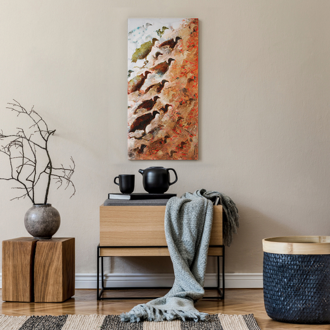 این اثر در ابعاد 50 × 100 سانتی‌متر است. مواد به کار رفته در آن اکولین (جوهر رنگی) و اکرلیک روی مقوای  نیمه براق است که نهایتا بر روی یک شاسی چوبی به ضخامت یک سانتی‌متر چسبانده شده. این اثر با قاب ارائه خواهدشد.